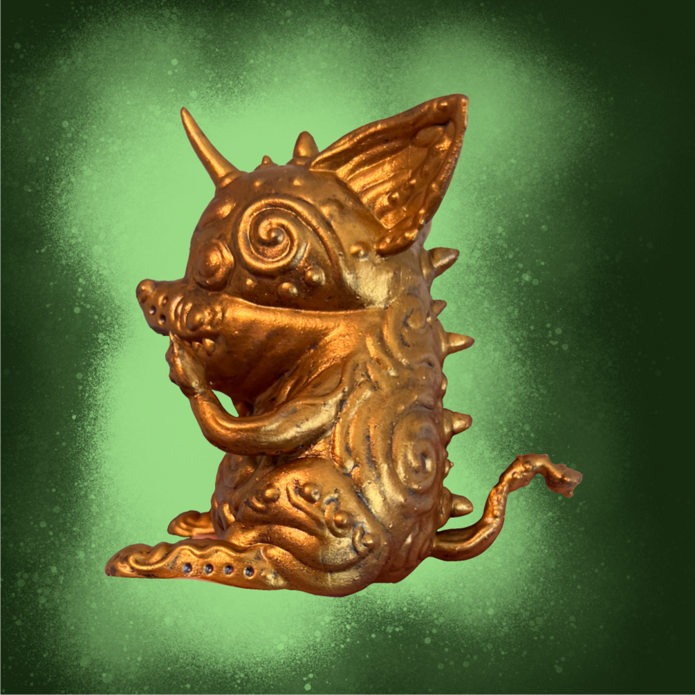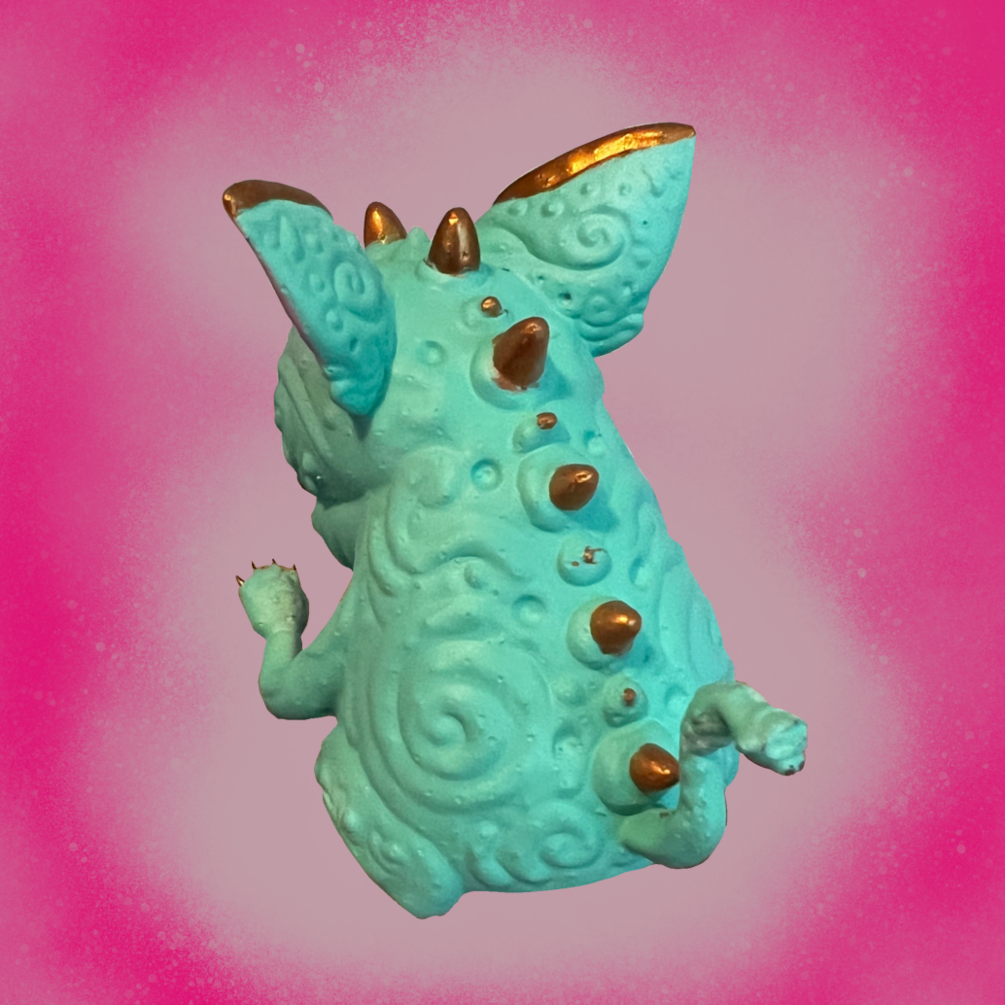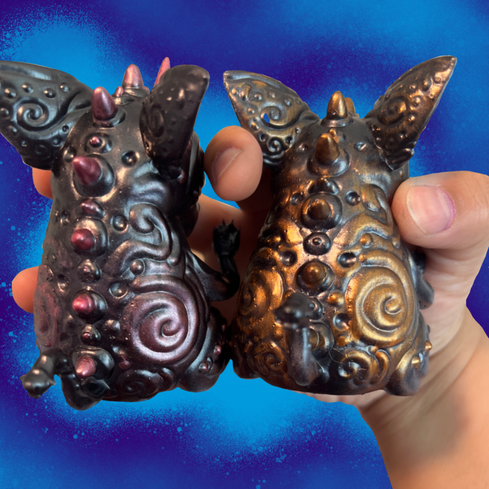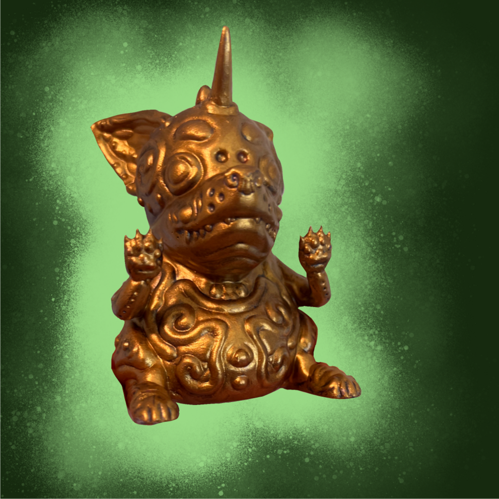 This is a designer toy that comes in a 5 inch cubed box and comes in 5 colors: blue, pink, metallic gold, metallic pink, and gold. This is a preorder and the final toy will be shipped out on or by September first